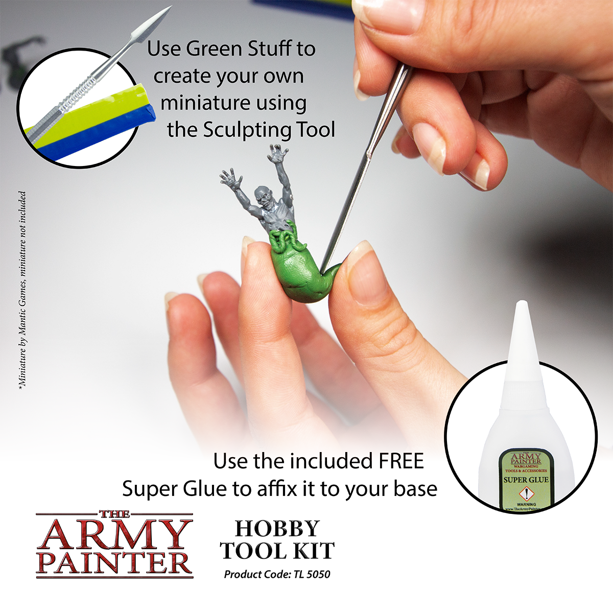 - Also contains: Hobby File, Hobby Knife, Green Stuff (2 pieces), Hobby Drill (3 drill bits), Hobby Side Cutter, Sculpting Tool