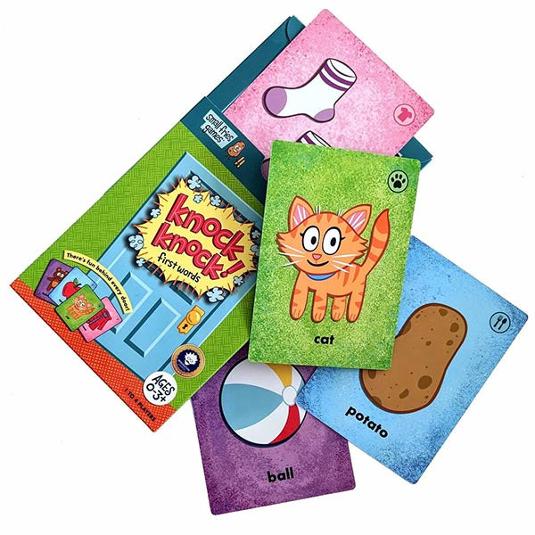 - PLAY ANYWHERE! Great for playing at home, on holiday, at restaurants or out and about! Knock Knock! first words is compact and portable. It can be popped into your changing bag/backpack/handbag/suitcase making it a great travel game/activity for babies, toddlers and preschoolers on the go!