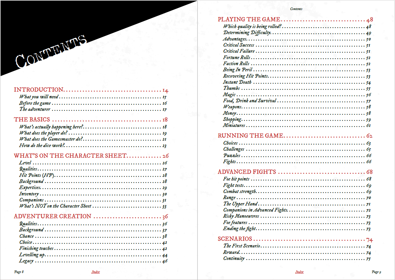 A simple, flexible rules system, but a book full of foes, magic items, potions, companions, and backgrounds. Fight a tree! Be a mayor! Use your skill at accounting to defeat a vampire somehow!