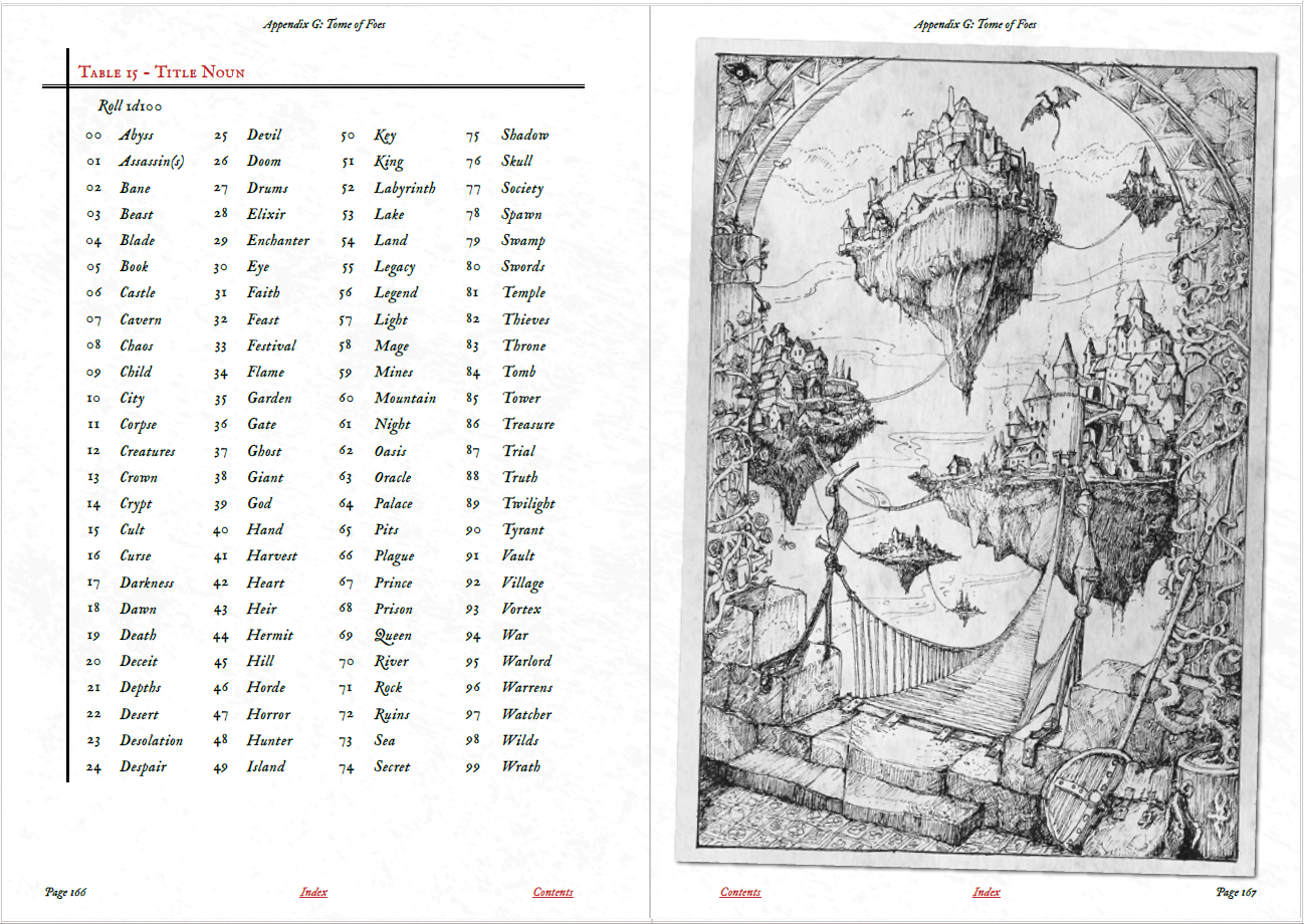 More tables than you can shake a randomly generated item at! What’s this adventure’s title? How are you cursed? What does it smell like?