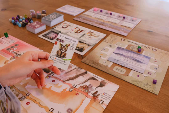 You are an amateur dracologist in the world of Wyrmspan, a place where dragons of all shapes, sizes, and colors roam the skies. Excavate a hidden labyrinth you recently unearthed on your land and entice these beautiful creatures to roost in the sanctuary of your caves.